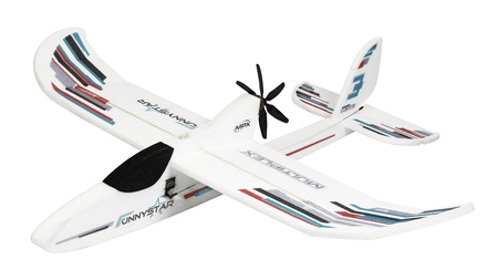 - Elektryczny motoszybowiec Multiplex Funny Star o rozpiętości 850mm dla początkujących pilotów RC w zestawie prawie gotowym do lotu ARF z silnikiem elektrycznym, regulatorem, śmigłem i serwami. Zestaw nie zawiera aparatury, akumulatora ani ładowarki.